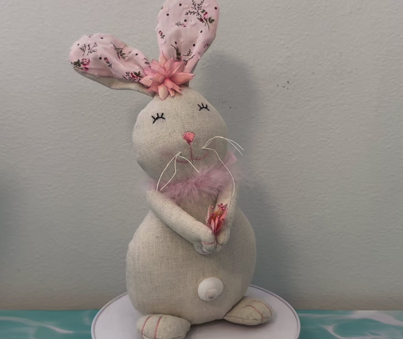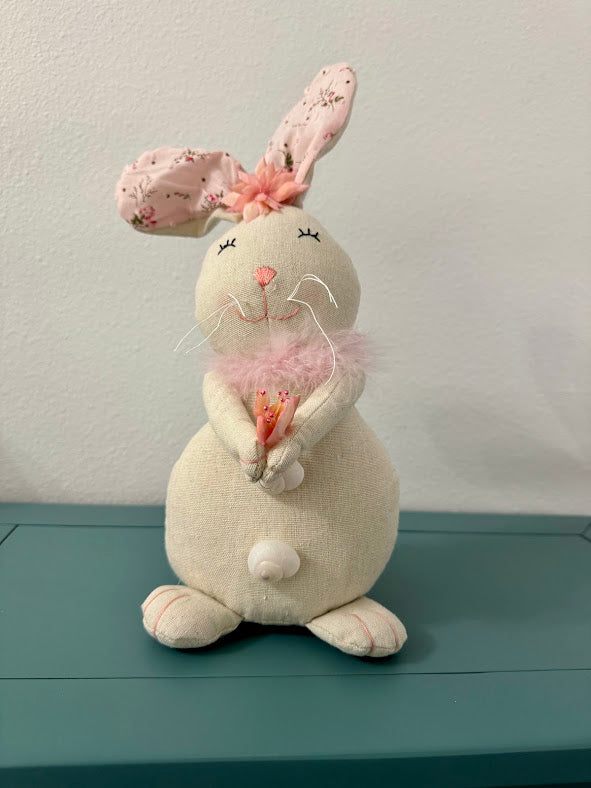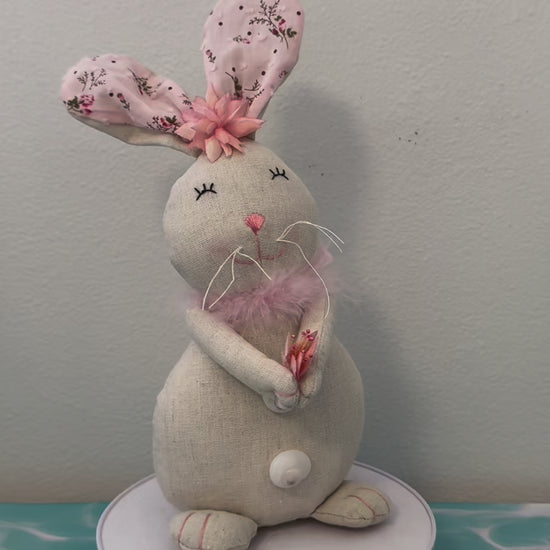 Coastal Easter Bunny Rabbit with Pink Flowers